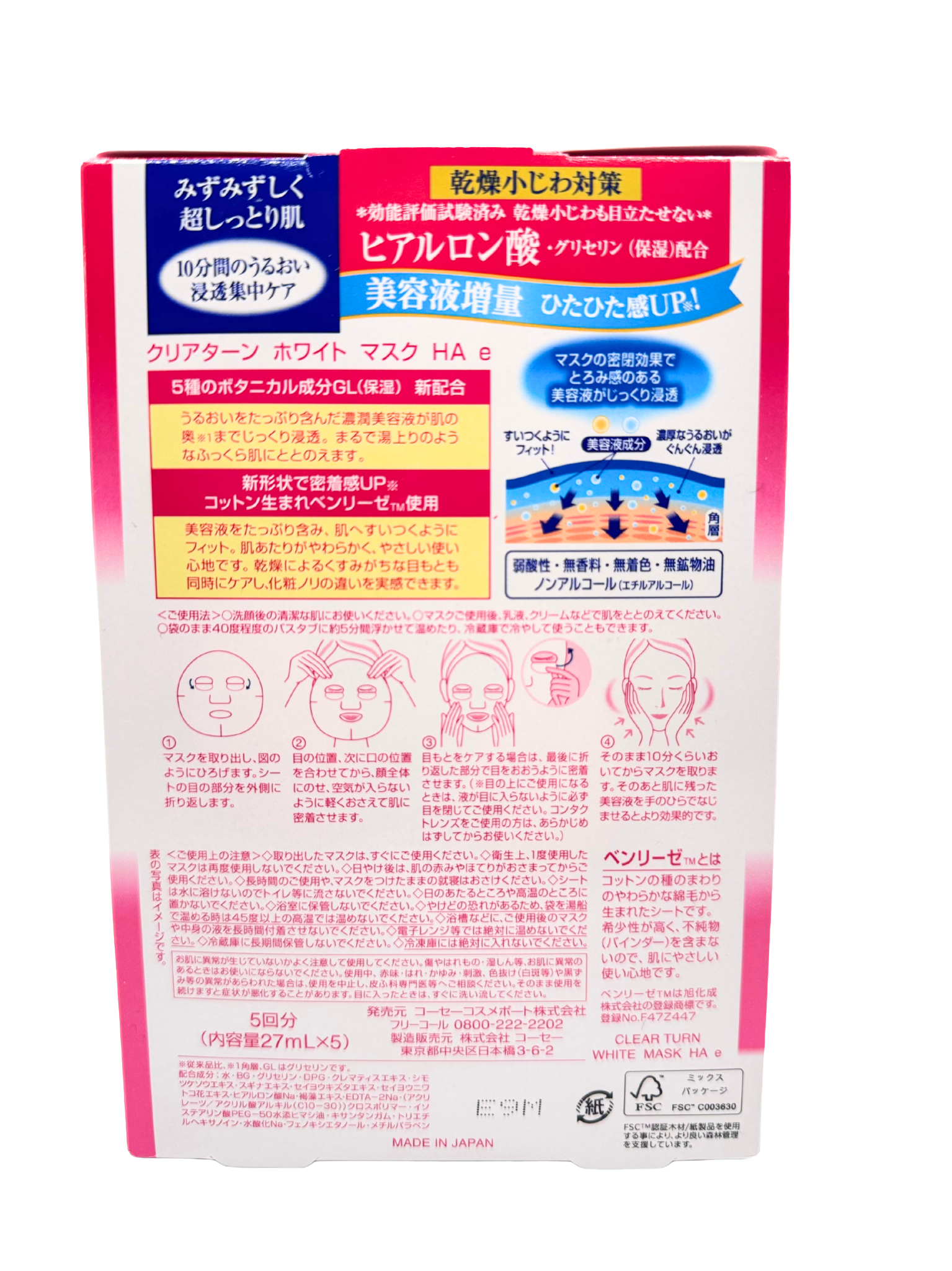 Brighten, hydrate, and even out your skin tone with the KOSE Clear Turn White Mask — Japan’s best-selling sheet mask for glowing skin.