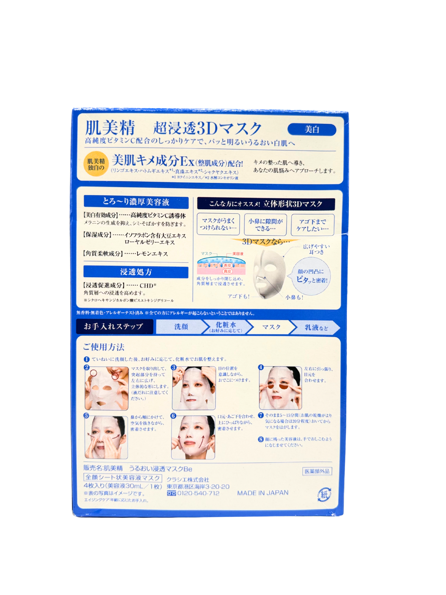 Experience the power of Japanese skincare with the Hadabisei 3D Anti-Aging & Brightening Facial Mask. This advanced sheet mask combines anti-wrinkle care with brightening treatment, using a 3D-fit design that hugs every contour of your face — including the chin and jawline — for maximum absorption.