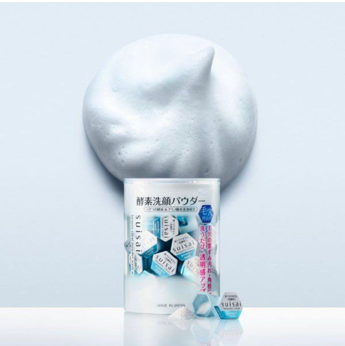 Poudre nettoyante enzymatique japonaise en capsules individuelles, conçue pour un nettoyage en profondeur des pores. Elle contient deux types d'enzymes et des agents nettoyants dérivés d'acides aminés qui éliminent efficacement les impuretés, l'excès de sébum et les cellules mortes, tout en préservant l'hydratation naturelle de la peau.